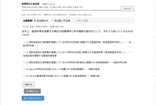 問題文・選択肢・解説をまとめてクリップボードにコピーするボタンも付けました。これはClaude等のAIに貼り付けてさらに深掘り解説を求めるために使っています。